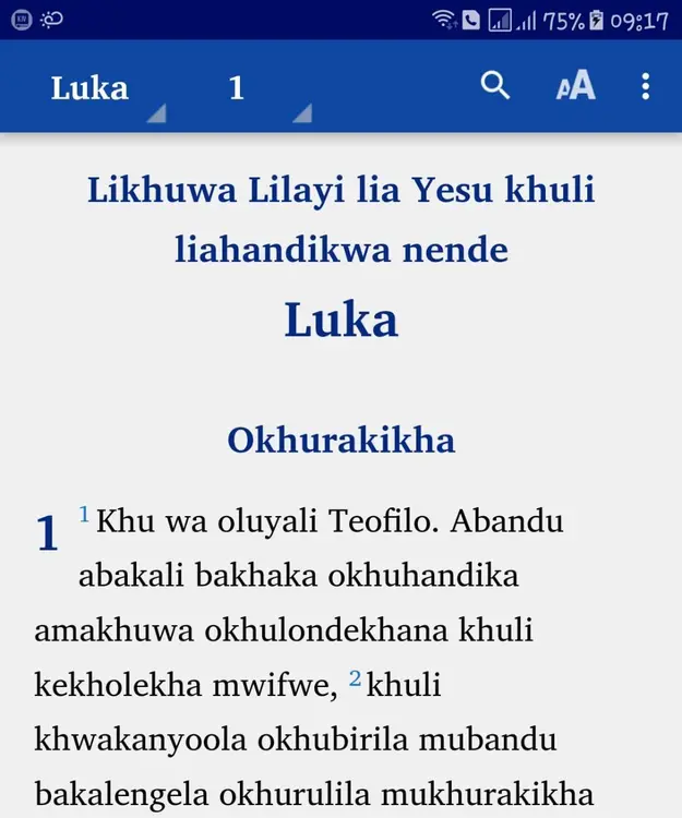 Na wenya okura Ebangeli ya olutachoni khu olusimu lulwo onyala wayikhisia okhurula hano. Ebikhisibwi Document Tachoni_Luka-1.0.apk (2.02 MB) Khurumire yinganakani yiyo naho amareba
